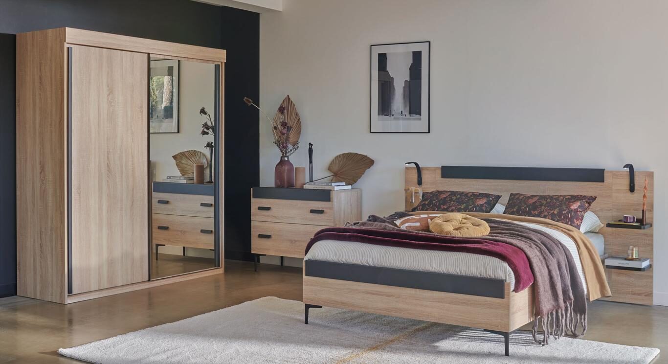First, c’est la collection chambre entrée de gamme et accessible, toujours avec la qualité de finition et de fabrication Meubles CELIO.